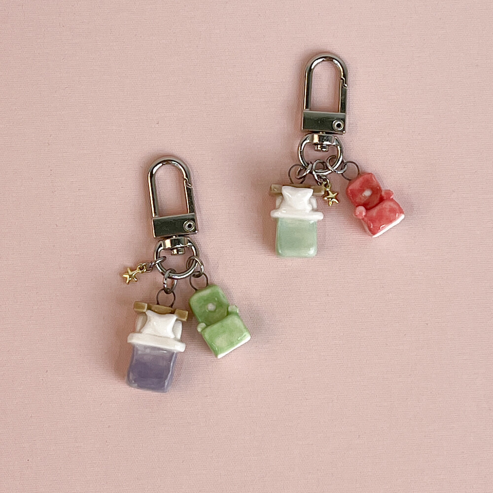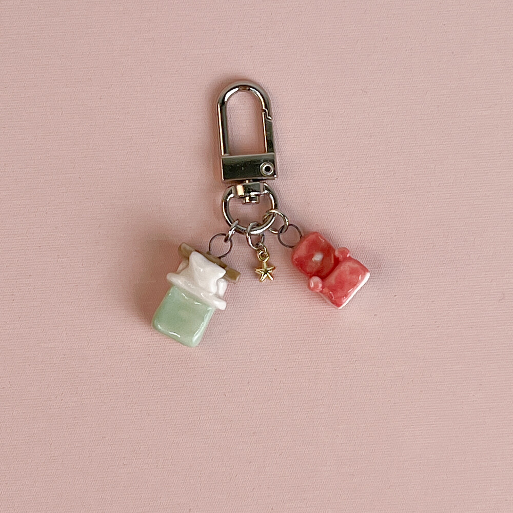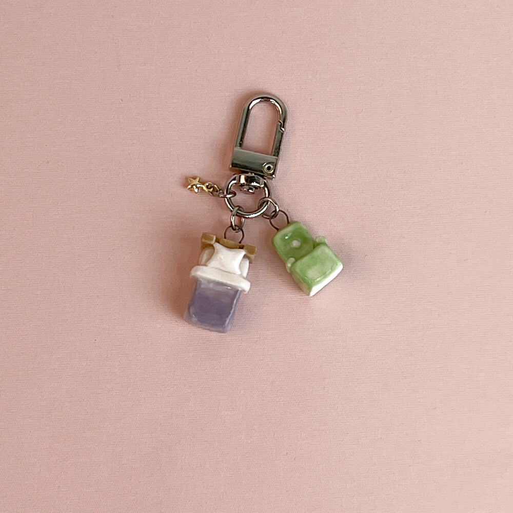 미니미니한 침대 + 소파 세트 키링입니다. ꕤ