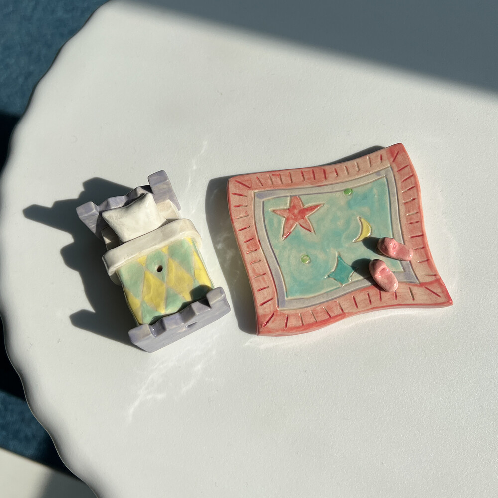 새벽에 만나는 라벤더 하늘빛 침대 인센스 홀더와