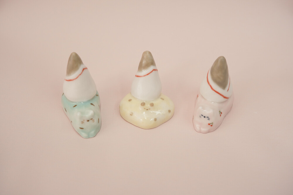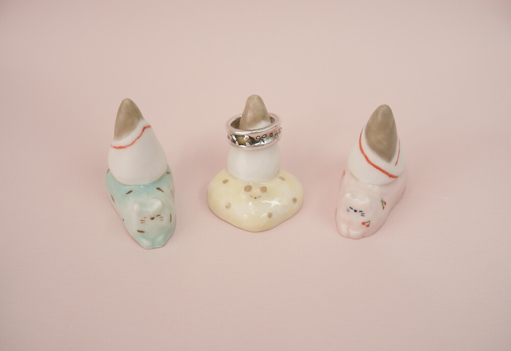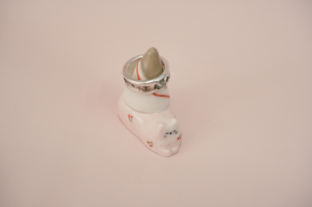 노곤하게 살짝 녹아버린 아이스크림 콘양이 반지걸이입니다.