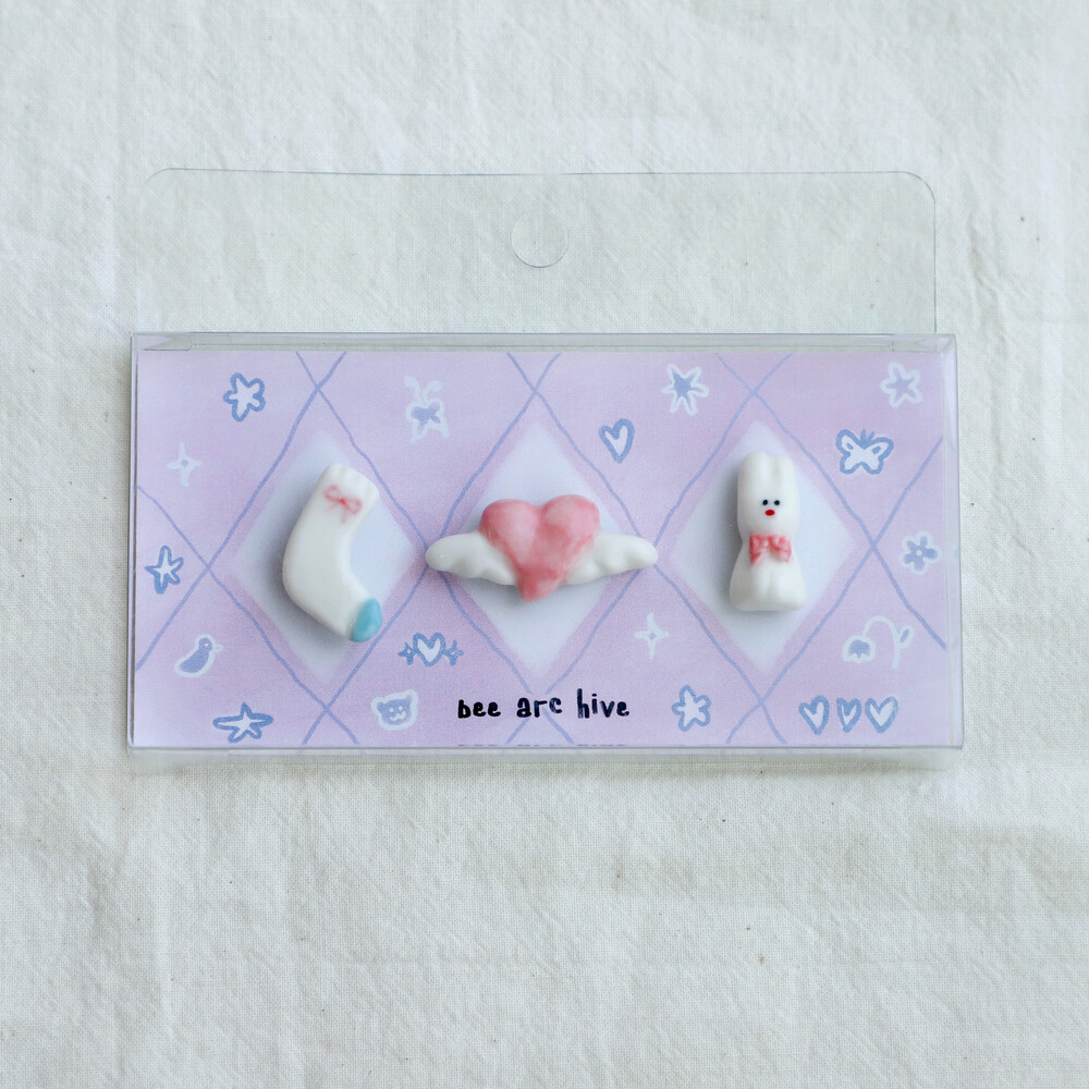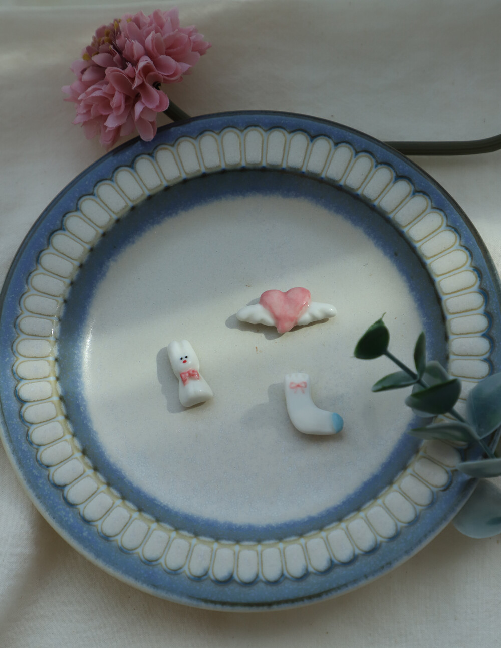 리본 양말, 날개 하트, 리본 토끼로 구성되어 있습니다.ꕤ