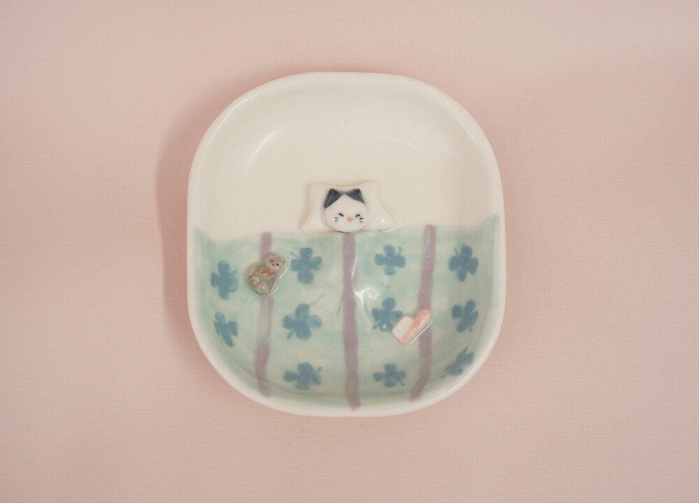 네모 모양 트레이 위 동물들이 곤히 잠들어 꿈꾸는 모습을 담은